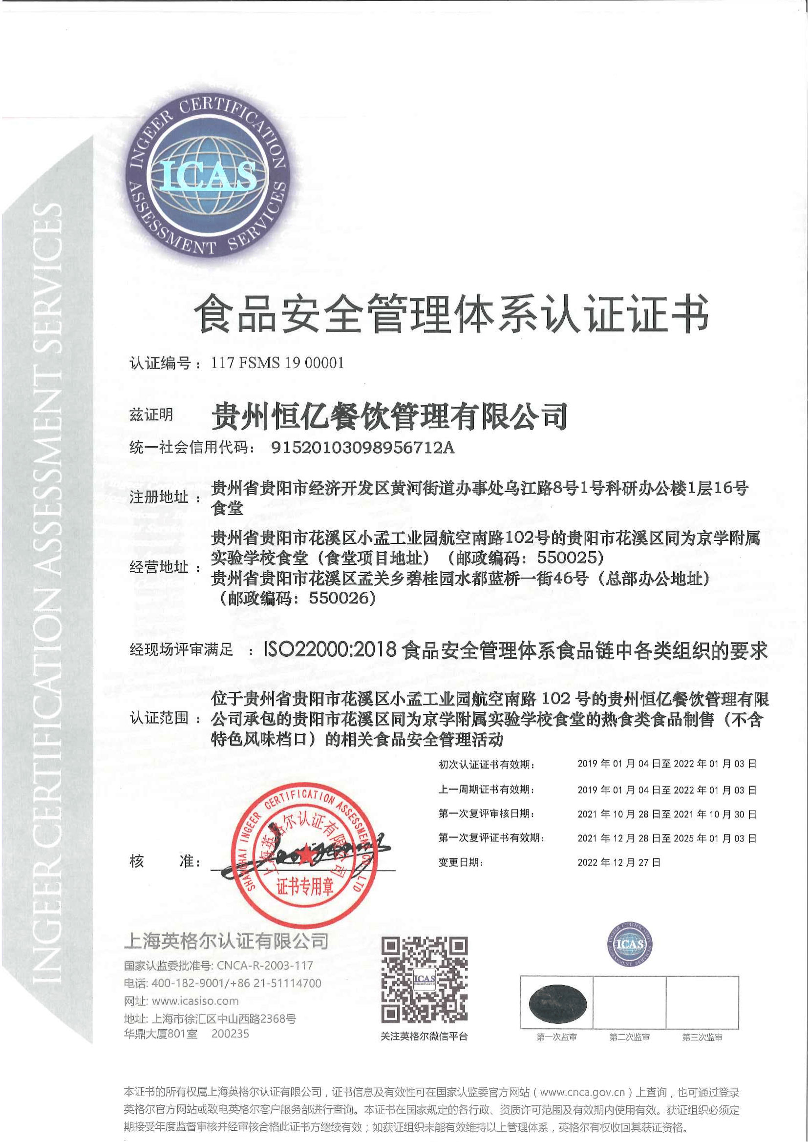 食品安全管理体系认证证书